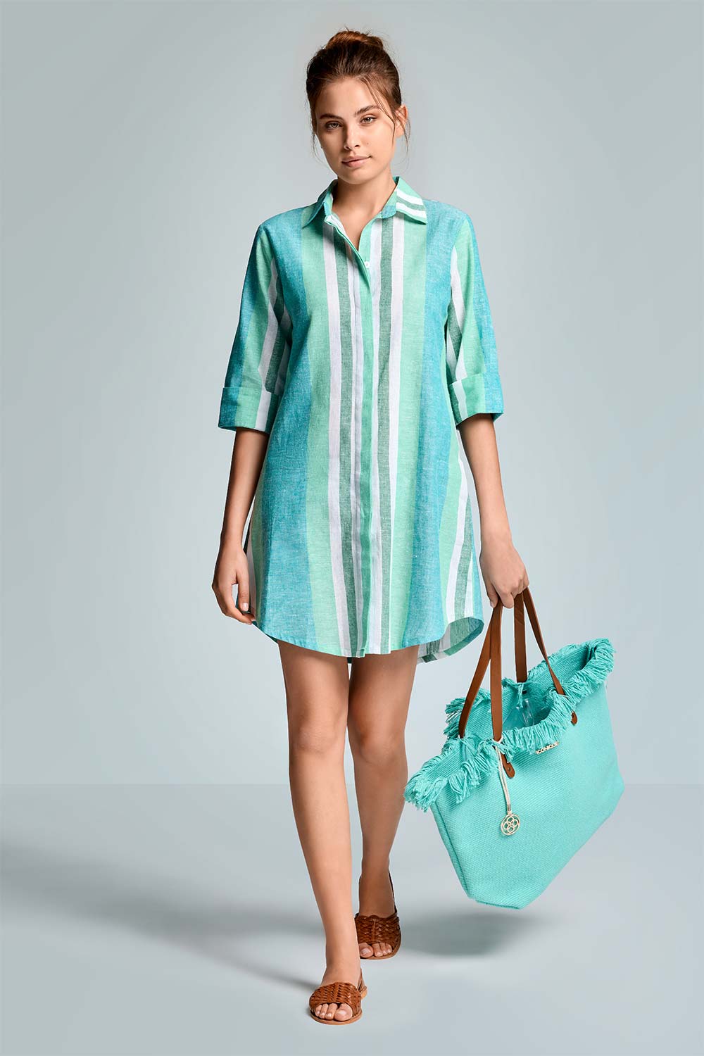David stripe eleanor shirt dress Green